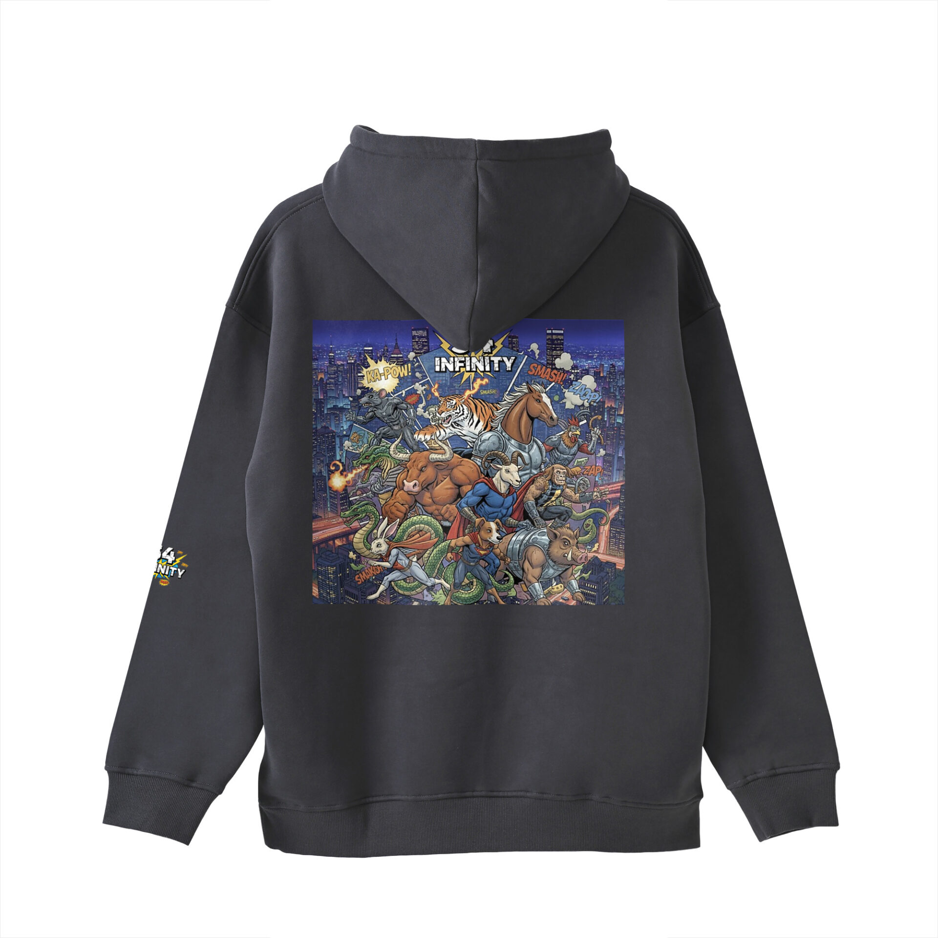 アメコミ風にヒーロー感が増した十二支をグラフィックとして落とし込みました。 あなたと干支はどんな進化をしてますか? 11.6オンスの裏起毛ビッグシルエットパーカー。 しっかりとした厚みがあり、保温性、保湿性、吸水性に優れている。 身幅と肩幅にゆとりを持たせたルーズなオーバーサイズのシルエットが特徴。