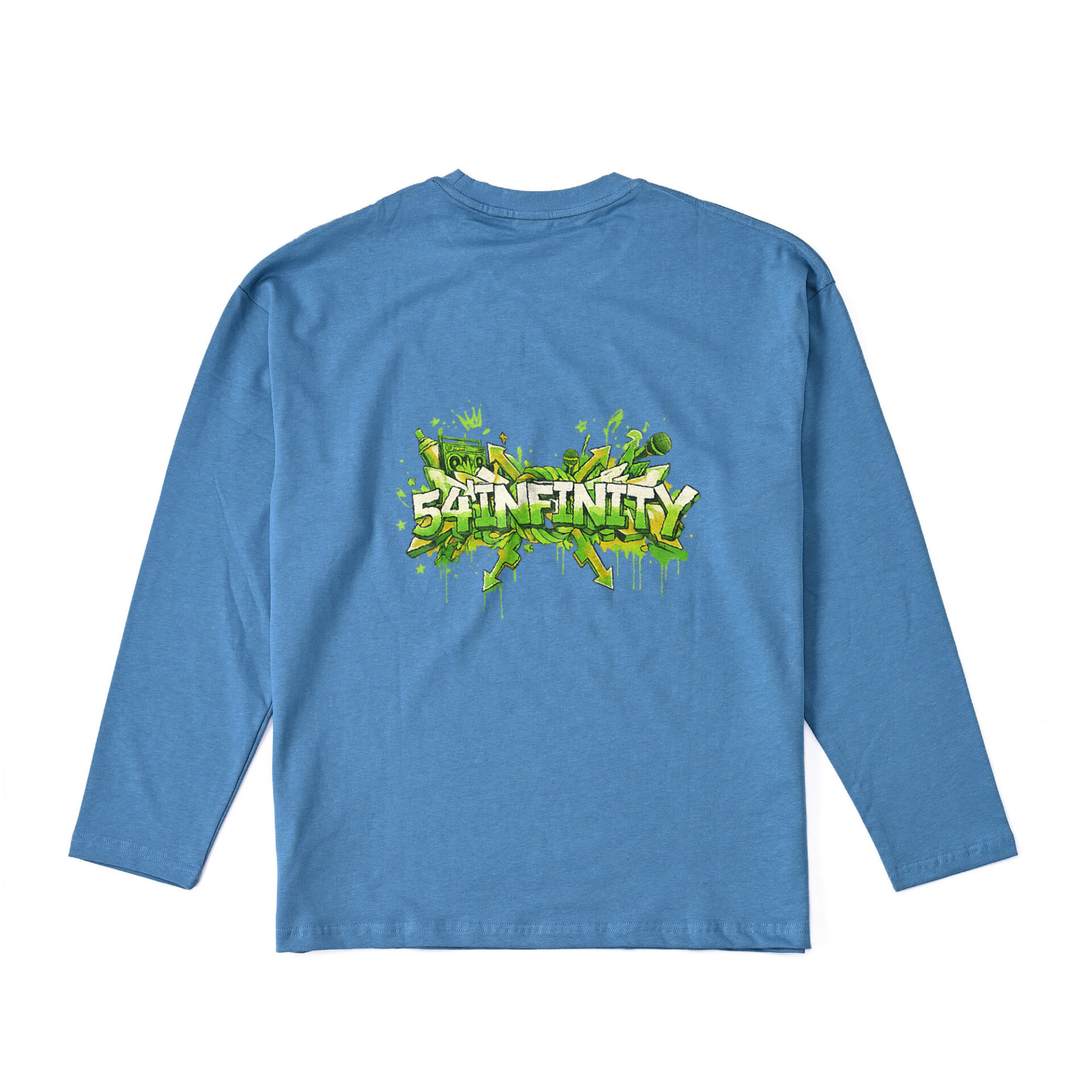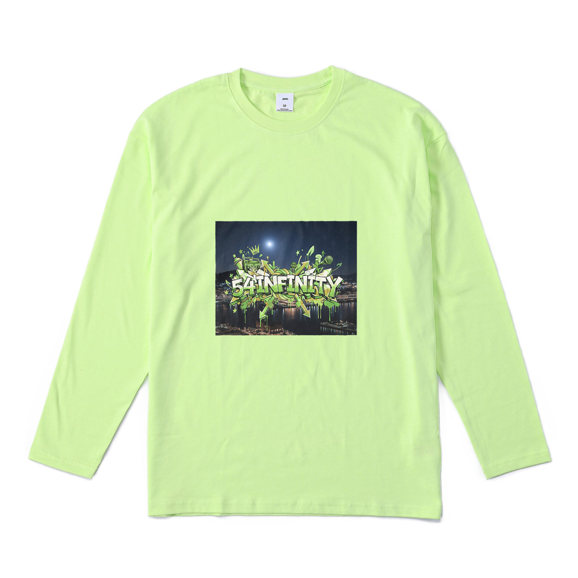 七五三縄をモチーフに54INFINITYが解釈するストリートへ昇華しました。 9.1オンスのヘビーウェイトロングスリーブTシャツです。 身幅と肩幅にゆとりを持たせたルーズなオーバーサイズのシルエットが特徴です。